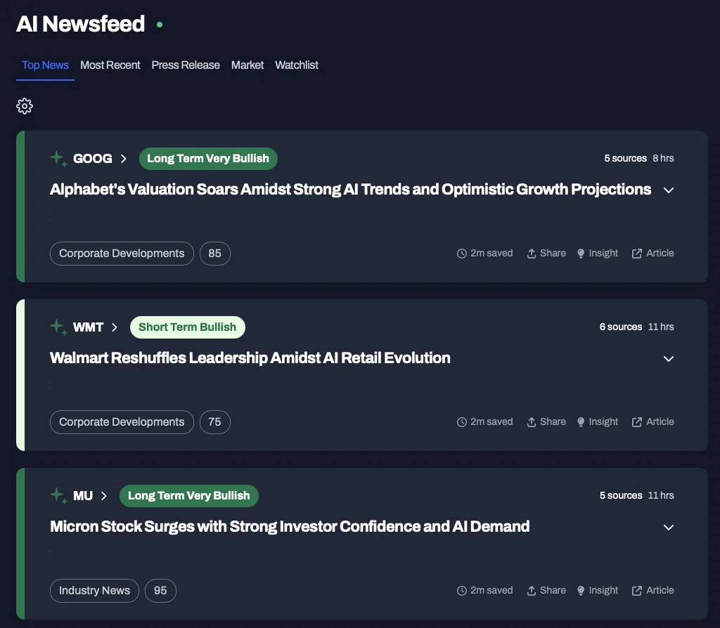 Most investors don’t want another endless stream of headlines, opinion-heavy takes without context, or yet another app amplifying noisy social media content. What they actually want is much simpler—but harder to execute well: relevant news tied directly to their watchlist, a clear understanding of what matters and why, fast awareness without sacrificing accuracy, and context that connects today’s events to a company’s historical fundamentals.